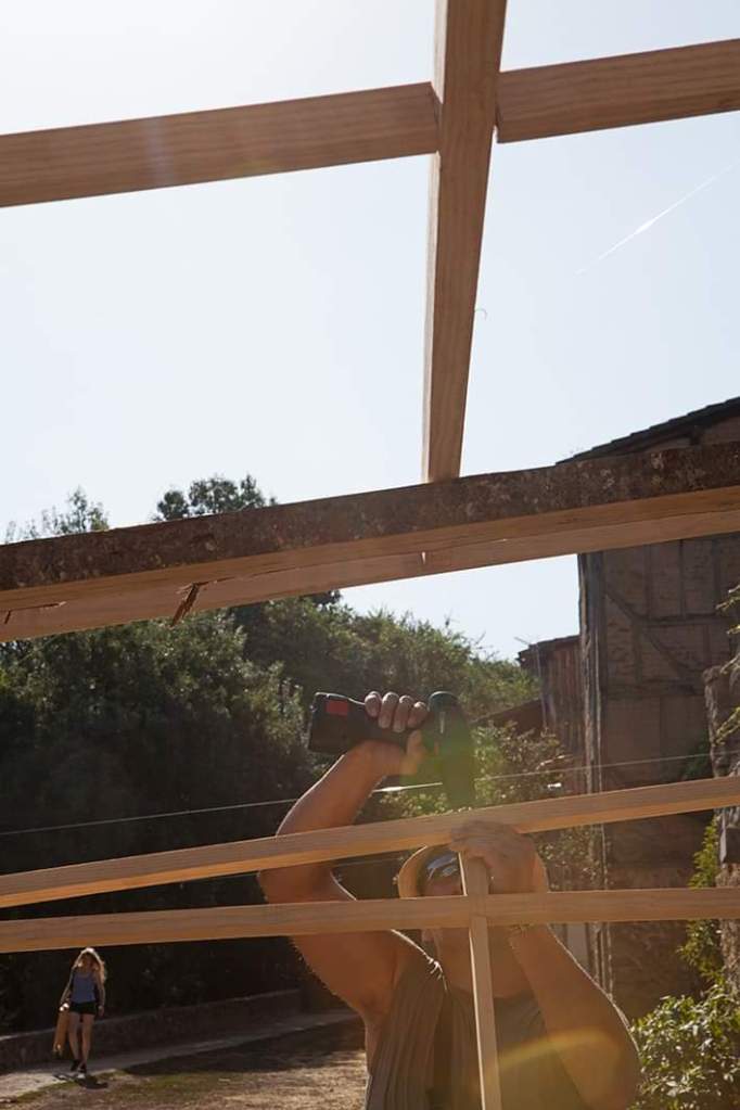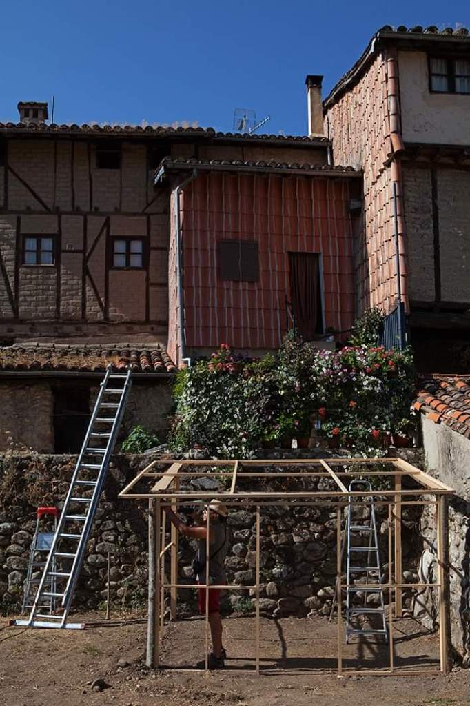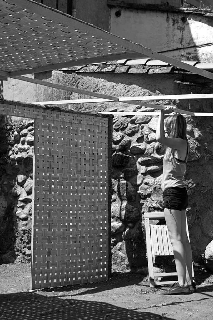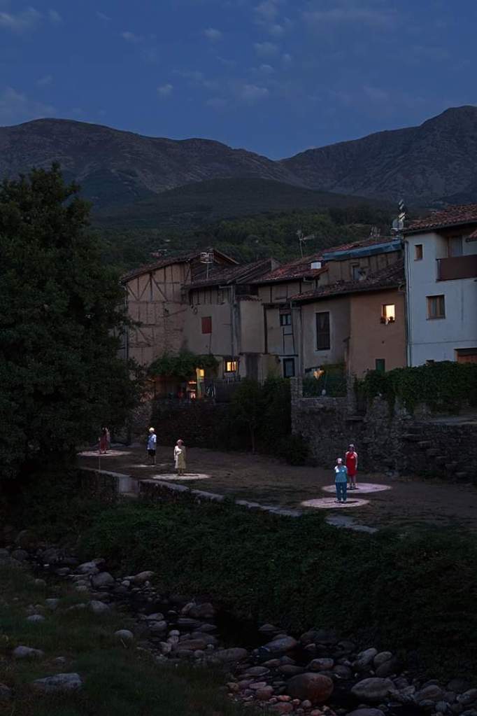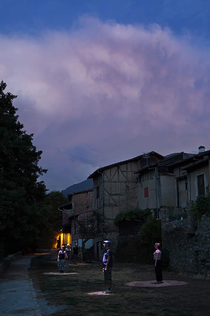 Este proyecto instalativo invita a explorar participativamente las transformaciones que ha experimentado el territorio de Hervás bajo el paradigma del “progreso”. En el entorno del Paseo Fluvial las artistas construirán una casa tradicional con troncos de castaño y paneles de cestería; a su alrededor, los participantes serán convocados a experimentar una pequeña ruta nocturna, apostando por la activación de los imaginarios colectivos en torno a los recursos naturales, el trabajo humano y los ciclos naturales. Esperamos que la penumbra tome protagonismo como contexto y atmósfera pre-industrial y que despierte las memorias de oscuridad, previa a la llegada de la electricidad, como forma primigenia de habitar y co-existir con el entorno.