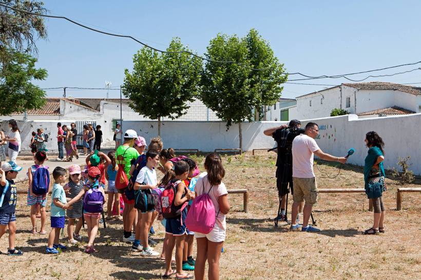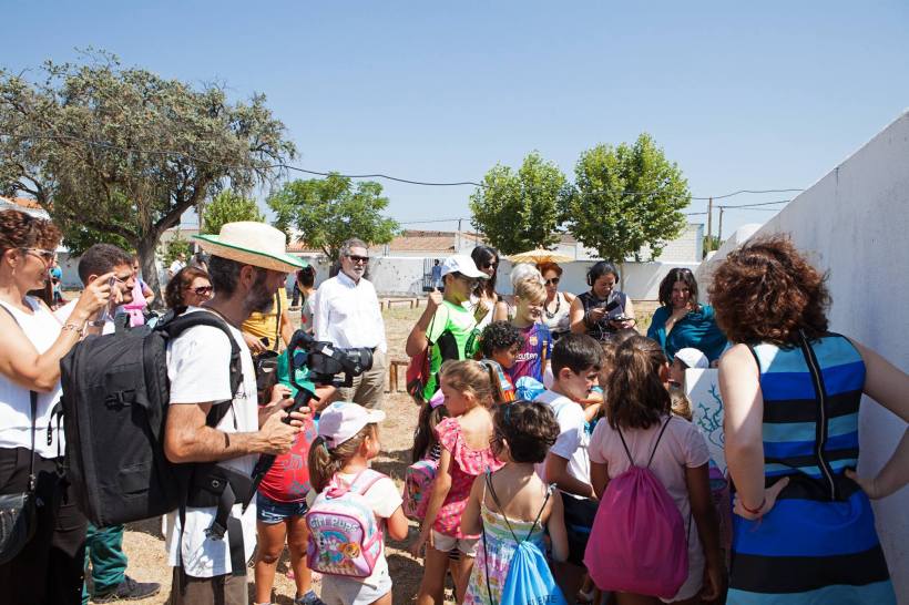 Algunas imágenes de la inauguración en la localidad. Tras el acto de apertura los creadores muestran el trabajo desarrollado durante la semana, y realizamos un recorrido comentado visitando las instalaciones in situ:
