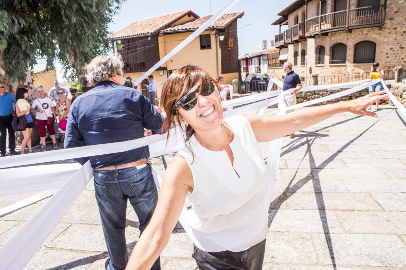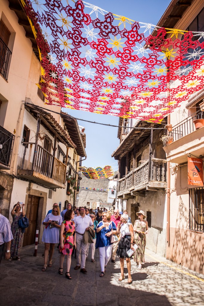 Las intervenciones realizadas serán visitables entre el 18 de agosto y el 30 de septiembre de 2017 junto con la instalación de parasoles de Tejiendo la Calle en el espacio público de Valverde de La Vera. Se trata de un municipio de la comarca de La Vera, declarado Conjunto Histórico Artístico, que cuenta con una valiosa arquitectura tradicional en piedra, adobe y madera, viviendas con patios interiores y calles estrechas con balconadas enfrentadas por las que circulan regueras de agua.