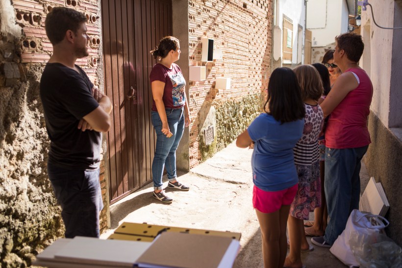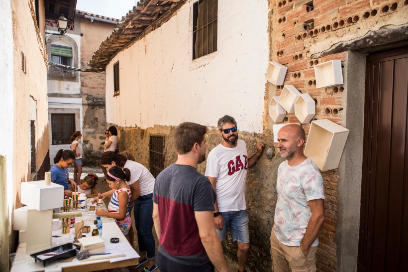 «Propuesta de revitalización urbana. Plug-In Façades trabaja la idea de la ciudad como placa base. Considerar las urbes como un espacio de juego y de trabajo real para sus ciudadanos permite una percepción de las mismas diferente, y un sentimiento de pertenencia consolidado. La propuesta tiene como ventaja su fácil montaje y desmontaje, lo que permite pensar en muchas posibilidades de diseño de dichas fachadas, en función a las necesidades de los ciudadanos o debido a eventos singulares de la ciudad. Estas ideas pueden contagiarse hacia otros lugares de similares características, sin estar atadas a calendarios u otras variables. La propuesta puede colocarse de manera exponencial en casi cualquier sitio, e incluso saltar del ámbito municipal. Se convierte así en una trama invisible que teje relaciones entre vecinos sin importar clase social, raza, edad o sexo. La fachada y el espacio adjunto se convierte en un punto de encuentro donde los plug-ins diseñados pueden transformarse y tener otros usos fácilmente, así como aparecer unos nuevos.”