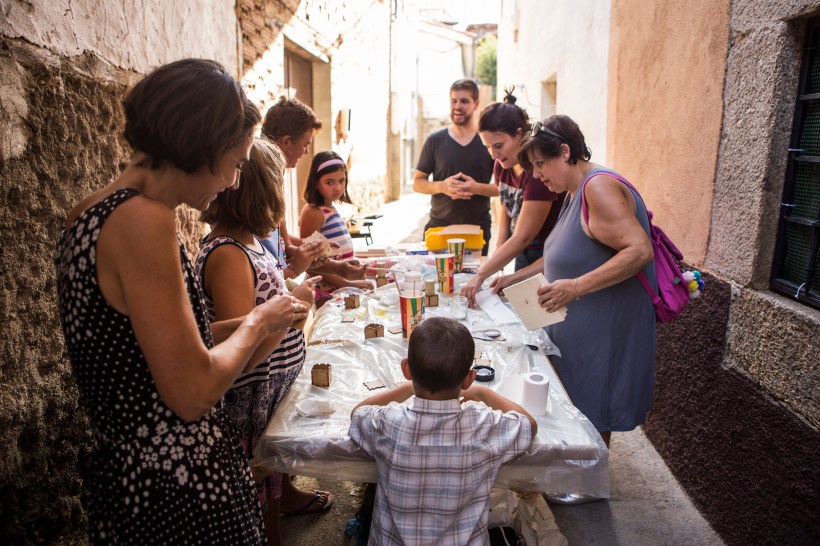 “La taza de té deja un cerco marrón en la superficie de la mesa. Una pasada de servilleta la hace desaparecer. Un ejemplar gastado de Especies de Espacios se apila sobre un montón de papelotes llenos de dibujos. Perec al lado de un libro de Avedon, que reposa sobre la obra completa de Tadao Ando. Temo que la mesa ceda. O que la tinta china que hay en pequeños botes herméticos (o así lo asegura Fabi), caiga sobre alguna maqueta. Mi vista se detiene en la cantidad de lápices, bolígrafos, plumas y rotuladores que se reparten por la mesa. Aquí el minimalismo no existe. Un señor posa sonriente con un jersey de cuello cisne, Carl Sagan. Cosmos, estrellas, ciencia. ”